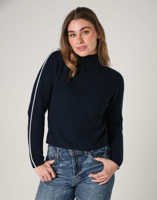 French Connection Cotton mozart high neck knit jumper with contrast trim in navy
