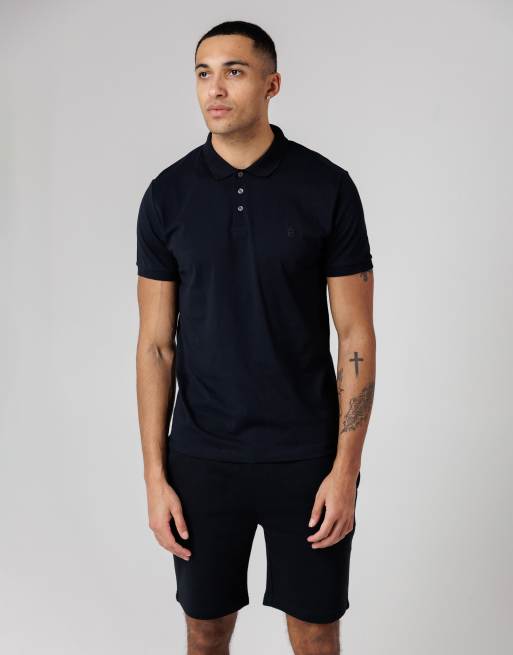 French Connection Cotton polo shirt and shorts co ord set in navy