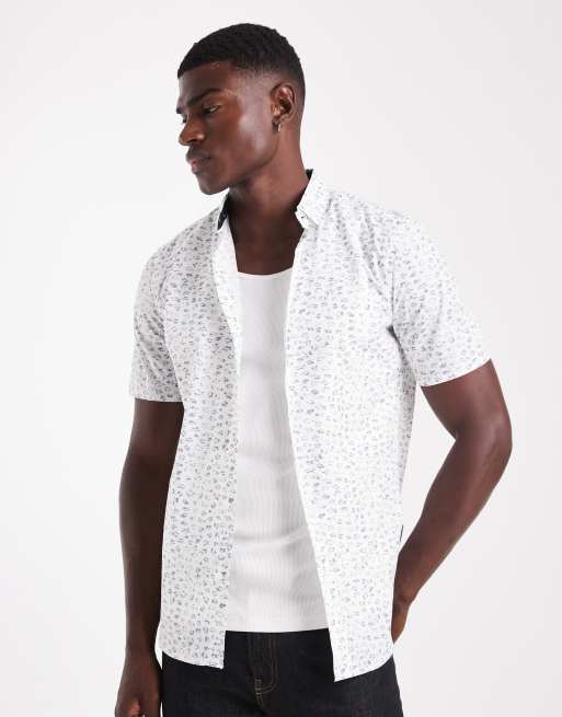 French Connection Cotton short sleeve floral shirt in white