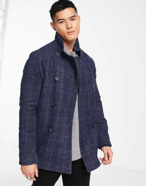 French Connection double breasted funnel coat in blue check
