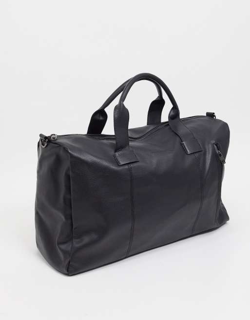 French Connection faux leather classic holdall bag in black