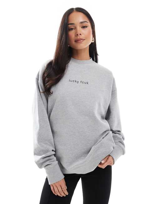 French Connection FCUK sweatshirt with lucky slogan in grey