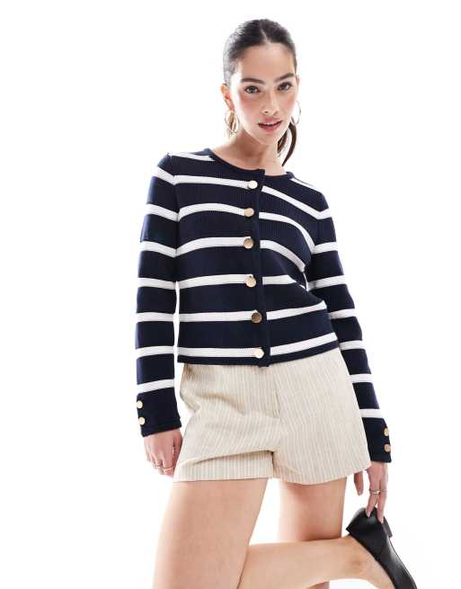 French Connection heavyweight button up cardigan in navy and white stripe