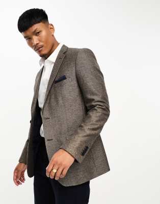 French Connection herringbone blazer in brown