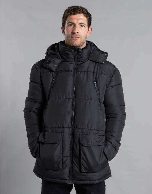 French Connection Hooded padded parka longline jacket in black