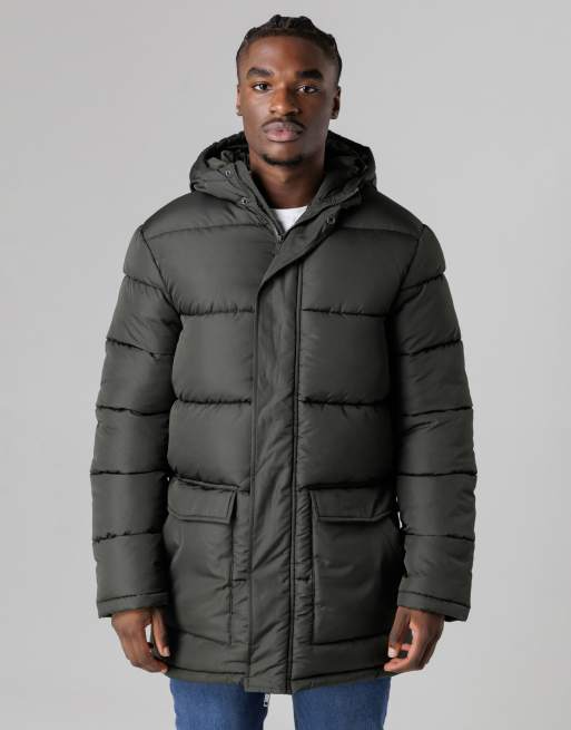 French Connection Hooded parka longline zip-through jacket in khaki