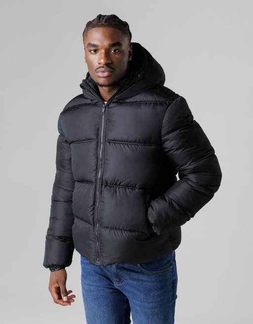 French Connection Hooded puffer jacket with high neck in black