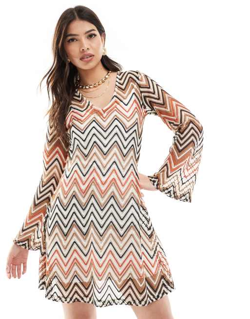 French Connection knitted shift mini dress in zig zag print