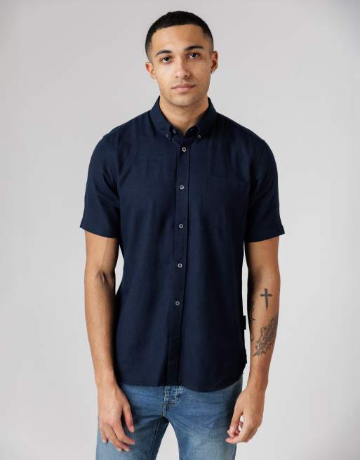 French Connection Linen blend short sleeve chest pocket shirt in navy