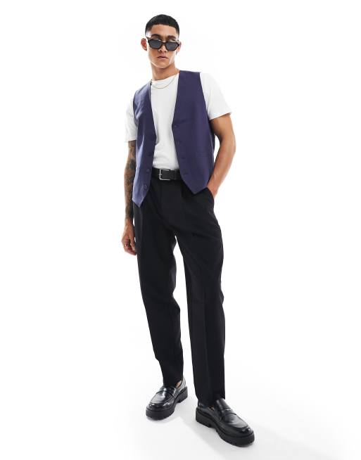 French Connection linen formal suit waistcoat in blue