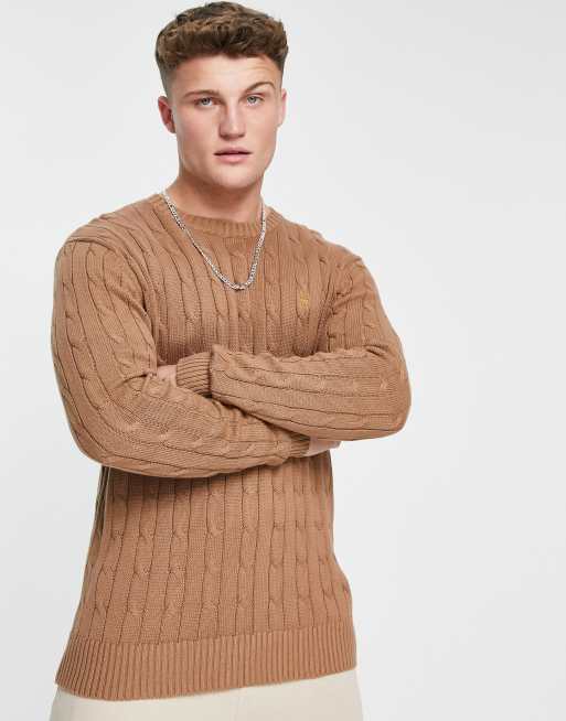 French Connection logo cable knit jumper in camel