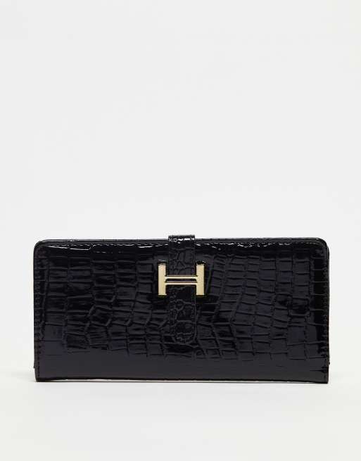 French Connection long moc croc purse in black