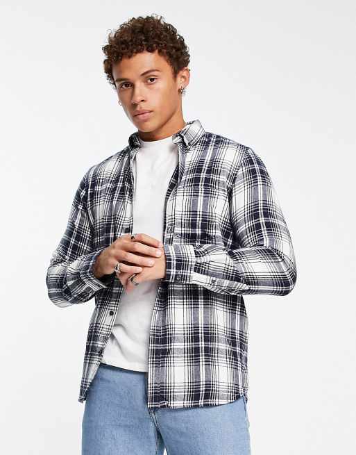 French Connection long sleeve check flannel shirt in white and black
