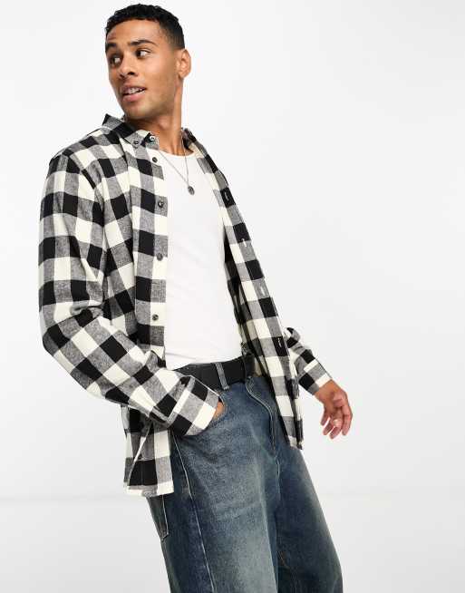 French Connection long sleeve gingham check flannel shirt in ecru