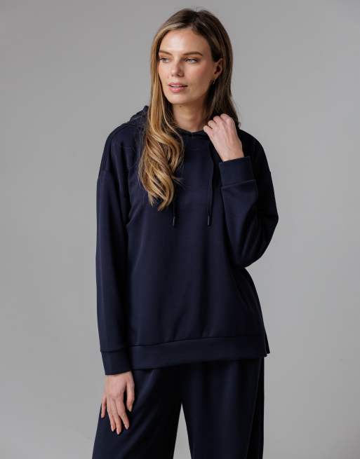 French Connection Luxe oversized drawcord hoody in navy
