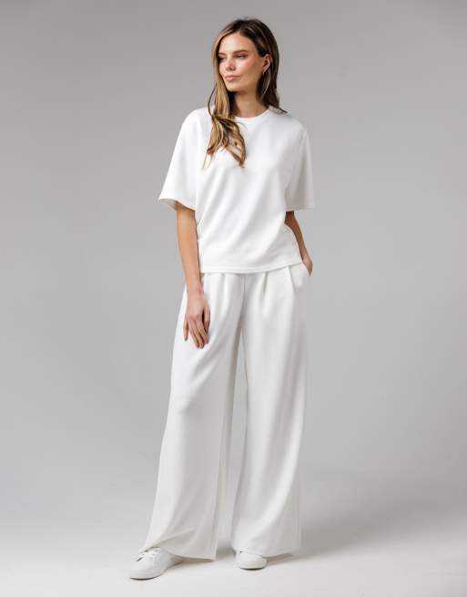 French Connection Luxe short sleeve crew neck pinched top in off white