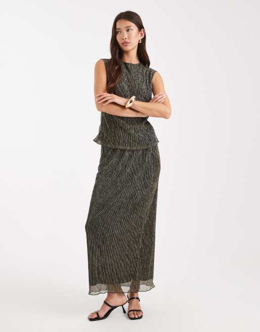 French Connection metallic plisse co-ord in gold