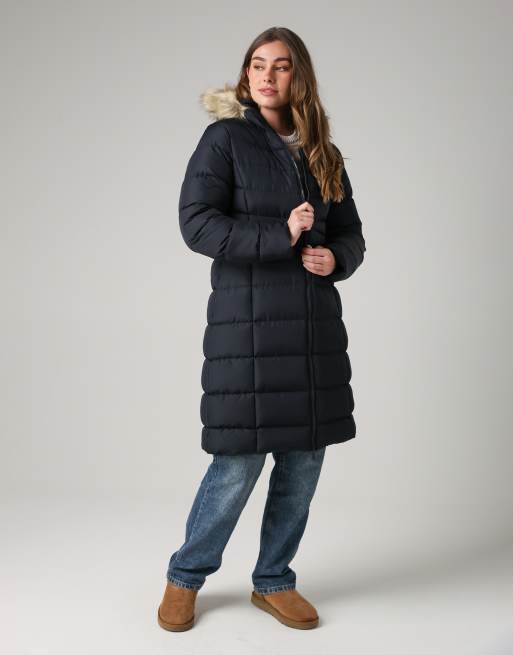 French Connection Midi padded parka jacket with faux fur hood in navy