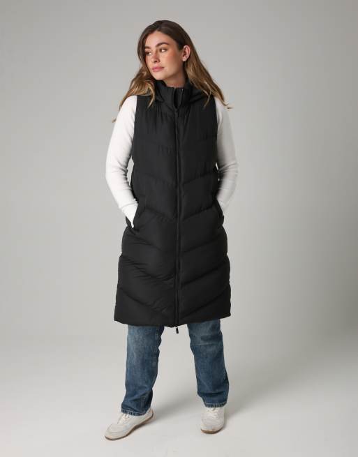 French Connection Midi quilted gilet with hood in black