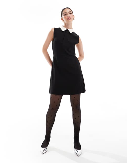 French Connection mini dress with contrast collar in black and white