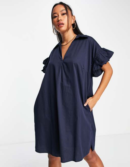 French Connection mini shirt dress with flutter sleeve in navy