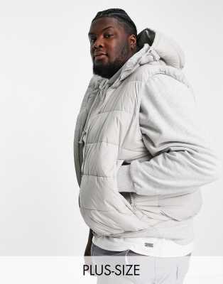 French Connection Plus puffer gilet with hood in light grey
