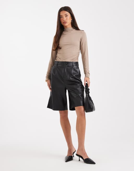 French Connection PU longline bermuda shorts in black