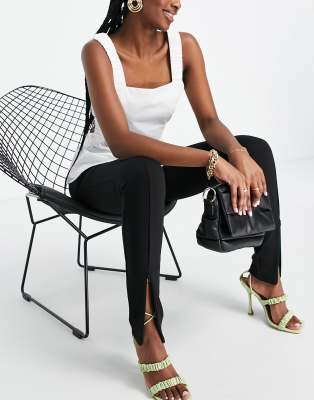 French Connection Stephanie slim fit trousers with front slits in black