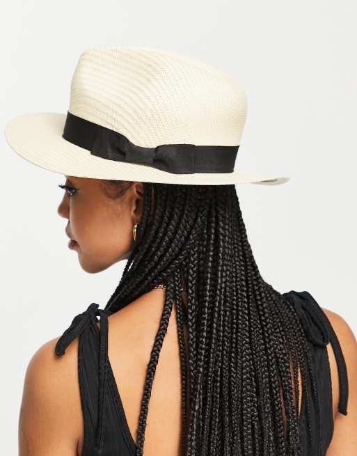 French Connection straw trilby sun hat in natural
