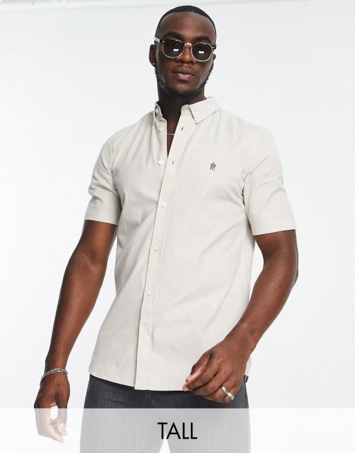 French Connection Tall short sleeve oxford shirt in stone