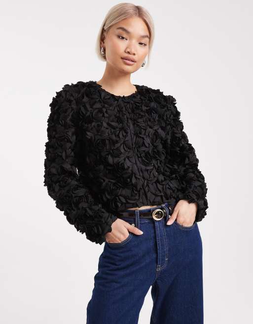 French Connection Verity 3d textured floral jacket in black