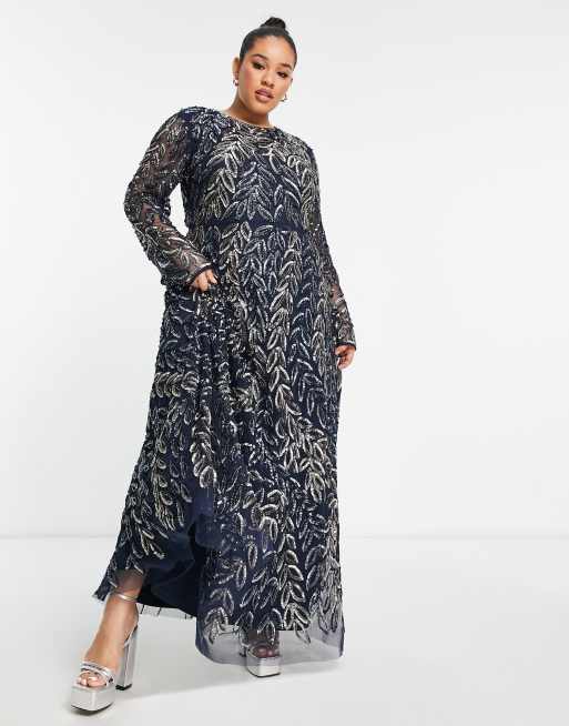 Frock and Frill Plus allover premium embellished maxi dress in navy