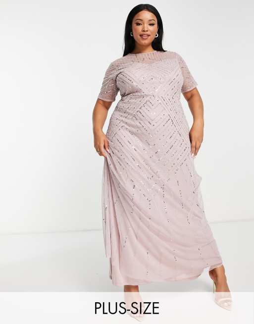 Frock and Frill Plus Bridesmaid short sleeve maxi dress with embellishment in dusty mauve