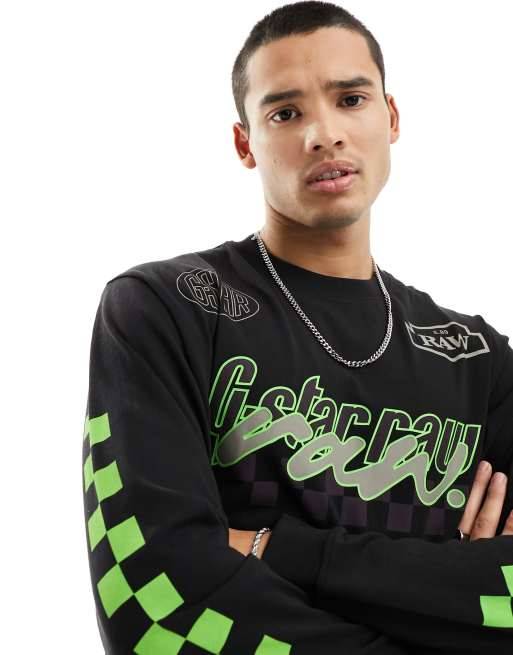 G-Star moto boxy oversized long sleeve t-shirt in black with multi placement prints