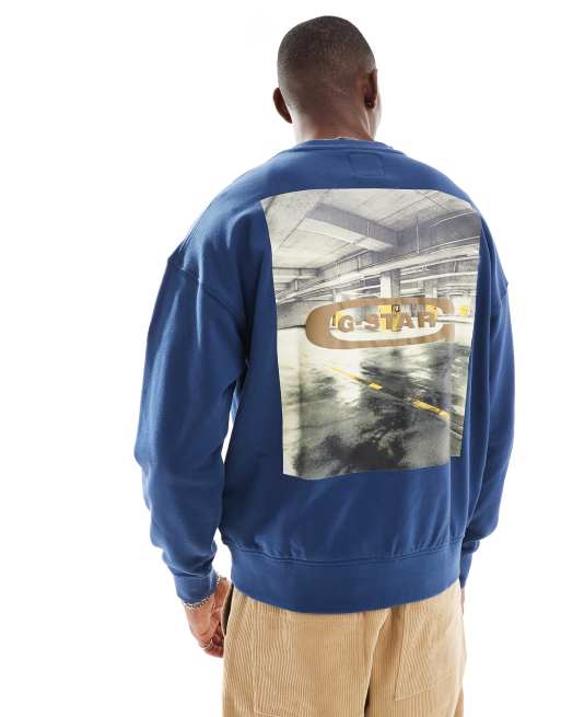 G-Star oversized sweatshirt in dark blue with chest logo and back photographic print