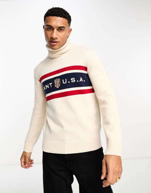 GANT banner shield logo rollneck cotton wool blend knit jumper in cream