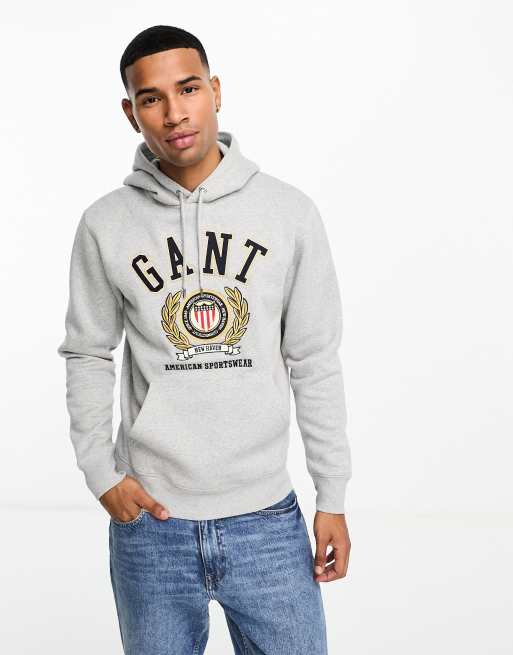 GANT crest logo embroidery relaxed fit hoodie in grey marl