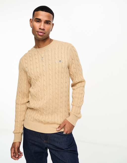 GANT icon logo cotton cable knit jumper in tan marl