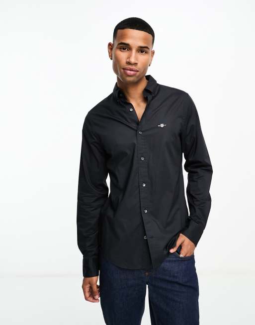 GANT icon logo slim fit poplin shirt in black