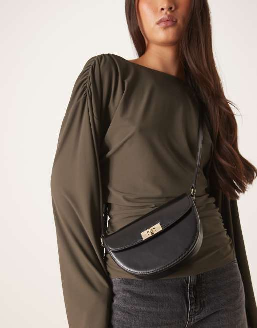 Gant leather cross body shoulder bag with gold buckle detail in black