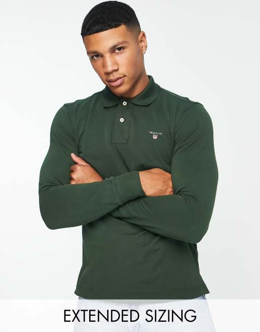 GANT original icon logo long sleeve pique polo in dark green