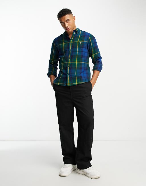 GANT shield logo check flannel shirt regular fit in dark green