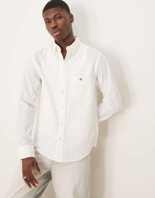 GANT shield logo seersucker tonal stripe shirt in off white