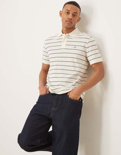 GANT shield logo stripe pique polo in cream