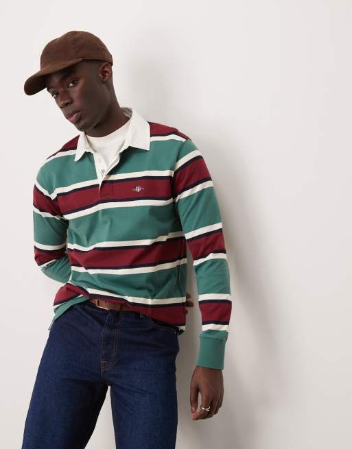 GANT striped logo rugby shirt in green