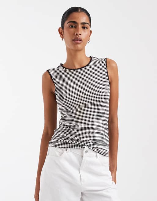 GAP gingham checked vest in brown