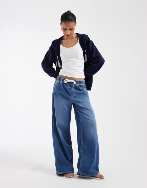 GAP tie waist drawstring wide leg jeans in mid blue