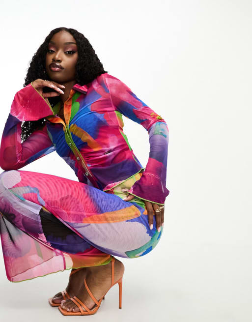 Gbemi mesh ruched tshirt and midi skirt co-ord in graphic floral