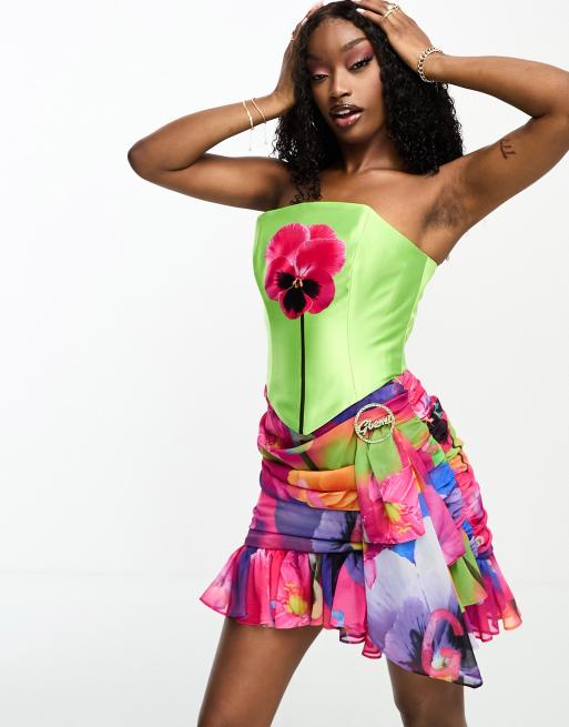 Gbemi Mia satin corset top with flower in neon green