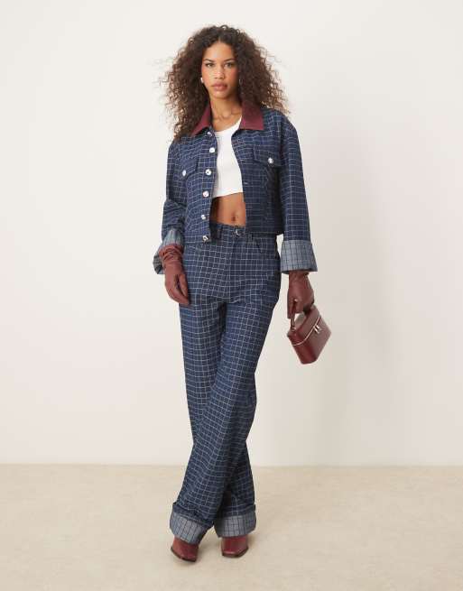 Ghospell contrast PU collar co-ord in denim